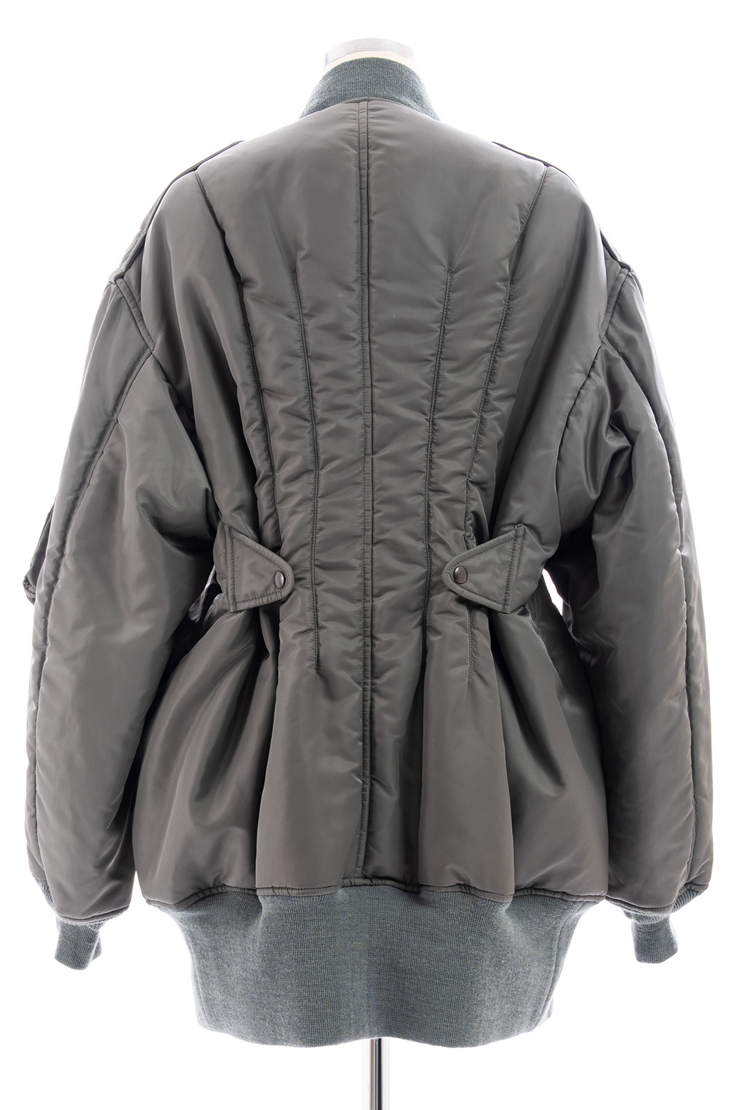 Junya Watanabe. Parka in tessuto di nylon verde con interno arancio.